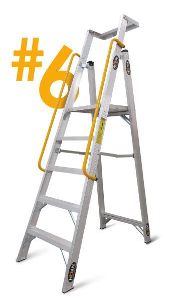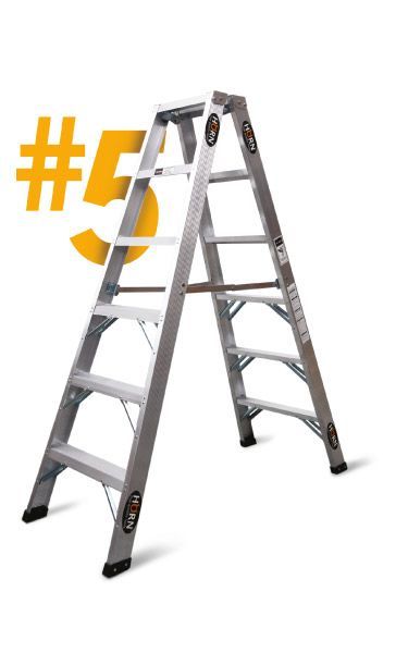 Escalera de tijera certificada, ideal para trabajos que requieren estabilidad, facilidad de uso y acceso seguro en altura. Disponible para venta y alquiler, su diseño autosoportado la hace práctica para labores de mantenimiento, instalaciones y uso operativo.